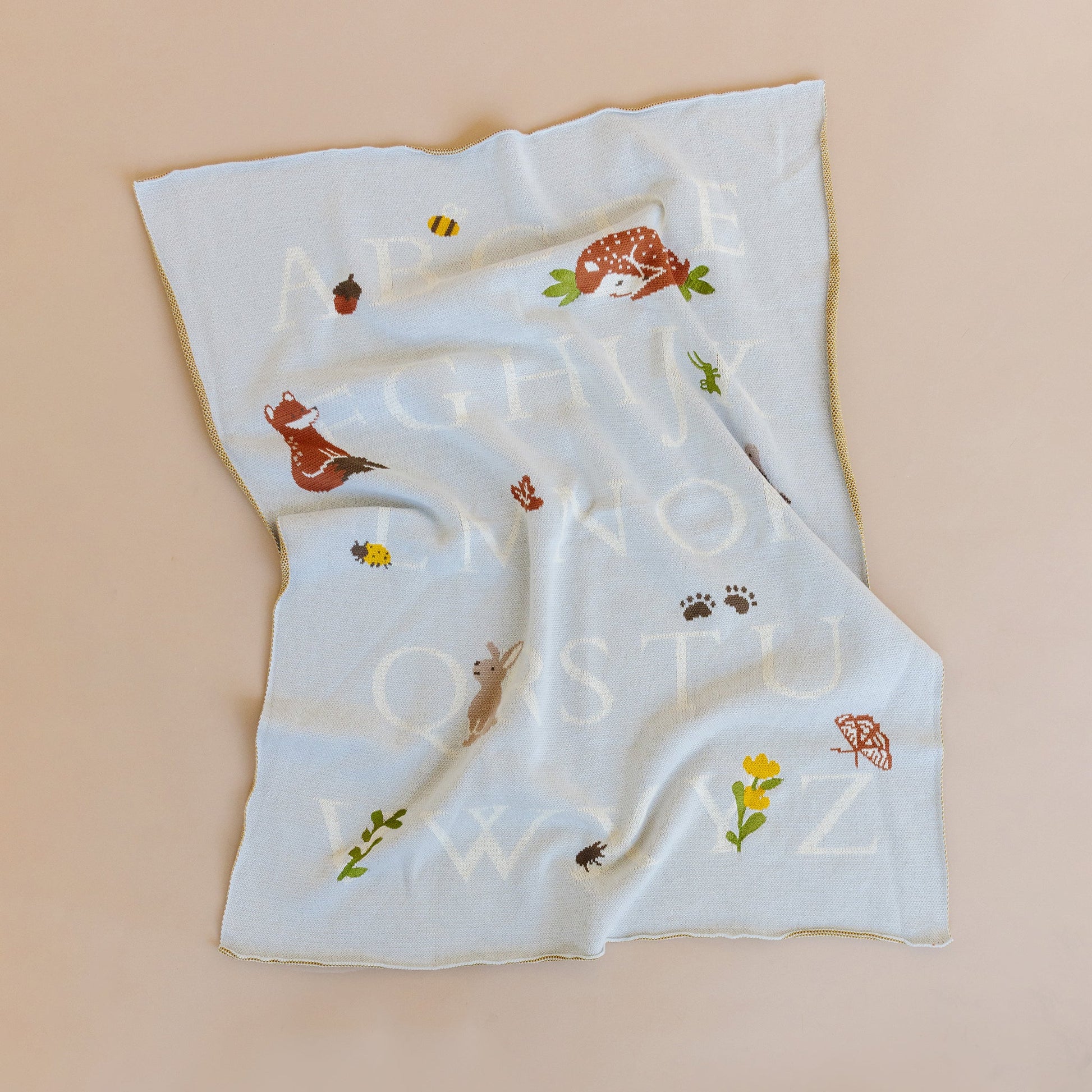 Wander through the woods and learn the alphabet with Rusty Fox. Share his love of nature and reading with this 100% GOTS certified organic cotton blanket, ensuring the softest and safest embrace for your baby's delicate skin. Wrap your precious bundle in comfort and style with this eco-friendly, irresistibly cute baby blanket that promises both warmth and peace of mind. Pair with Rusty Fox Plush Toy and Rattle.