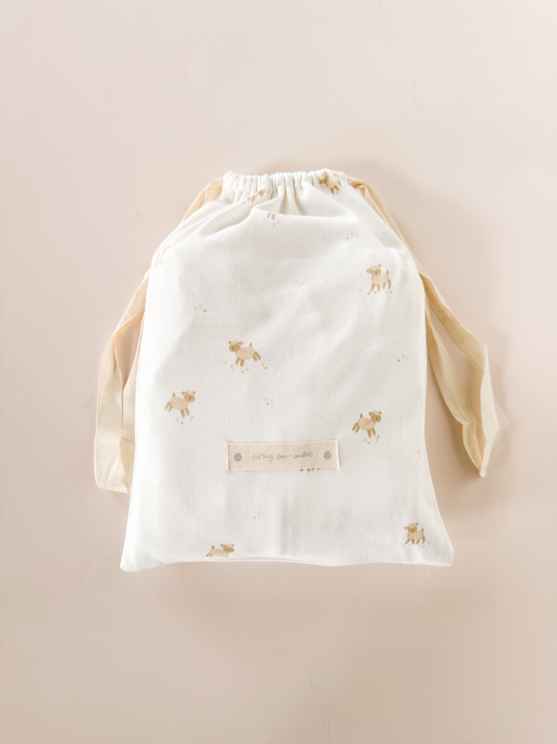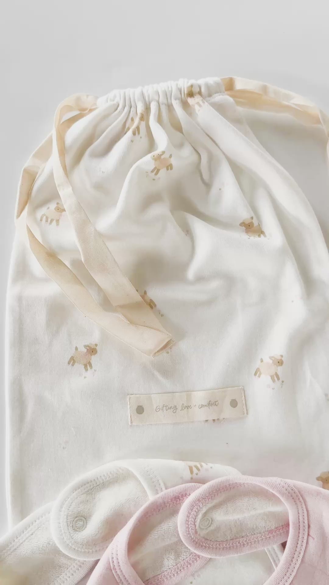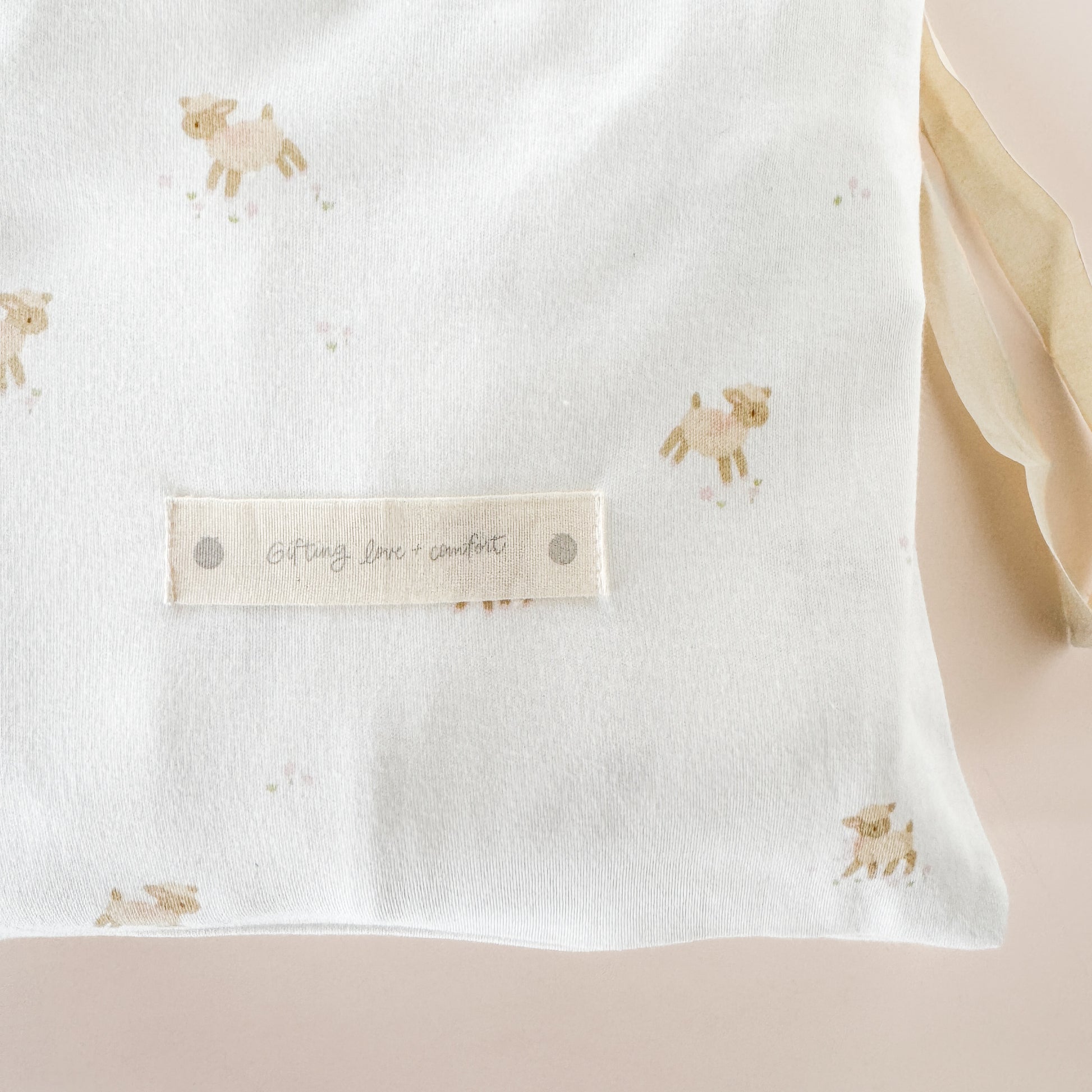 Our Layette sets make the sweetest gifts. Featuring two adorable patterns, Lamb and Bow. Available in four sizes.