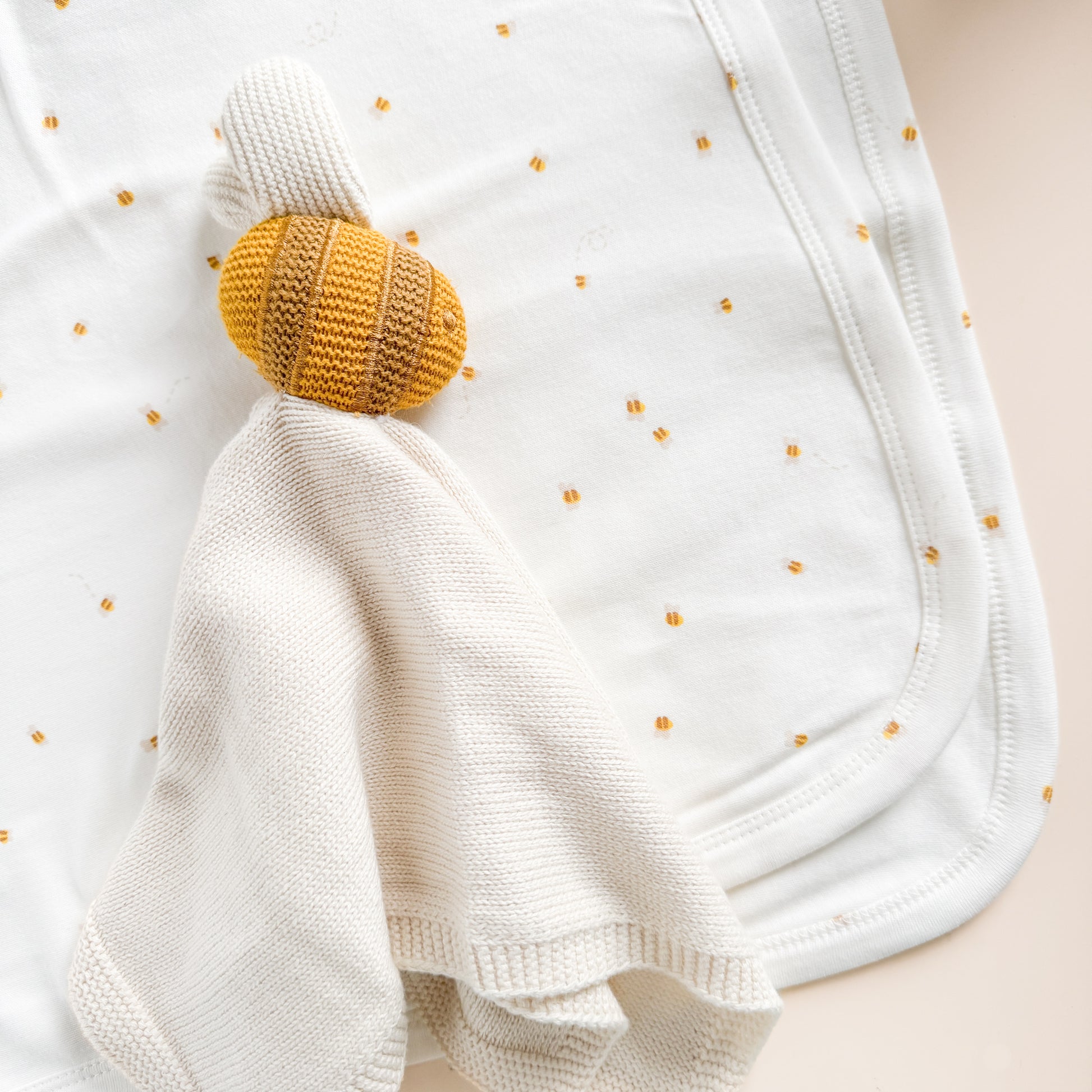 Wrap little ones up in our Layette swaddle blanket. Featuring our Bee pattern.