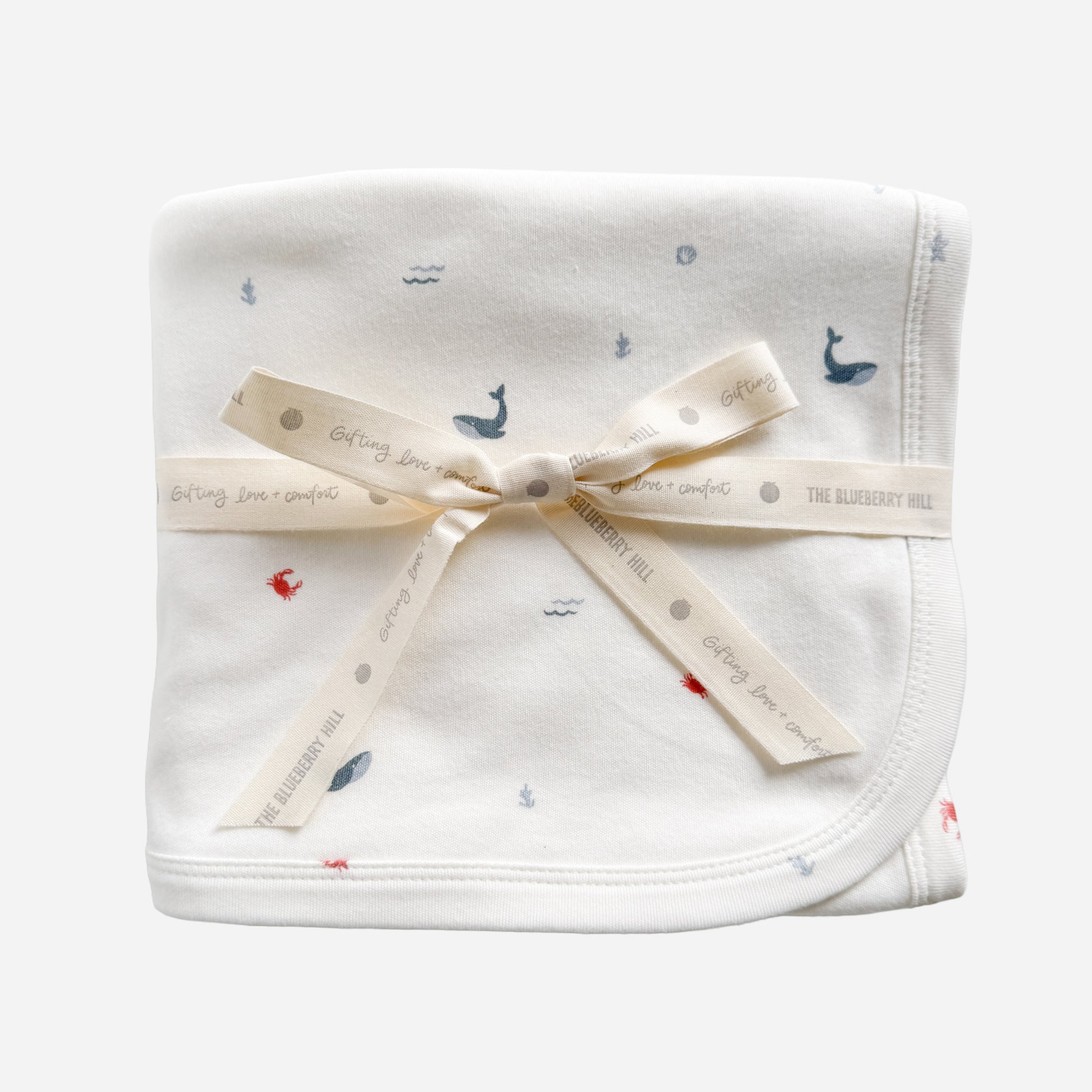 Wrap little ones up in our Layette swaddle blanket. Featuring our Nautical pattern in Blue.
