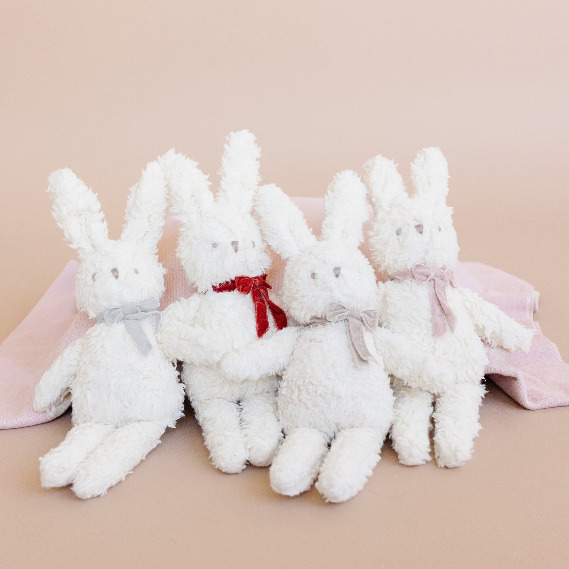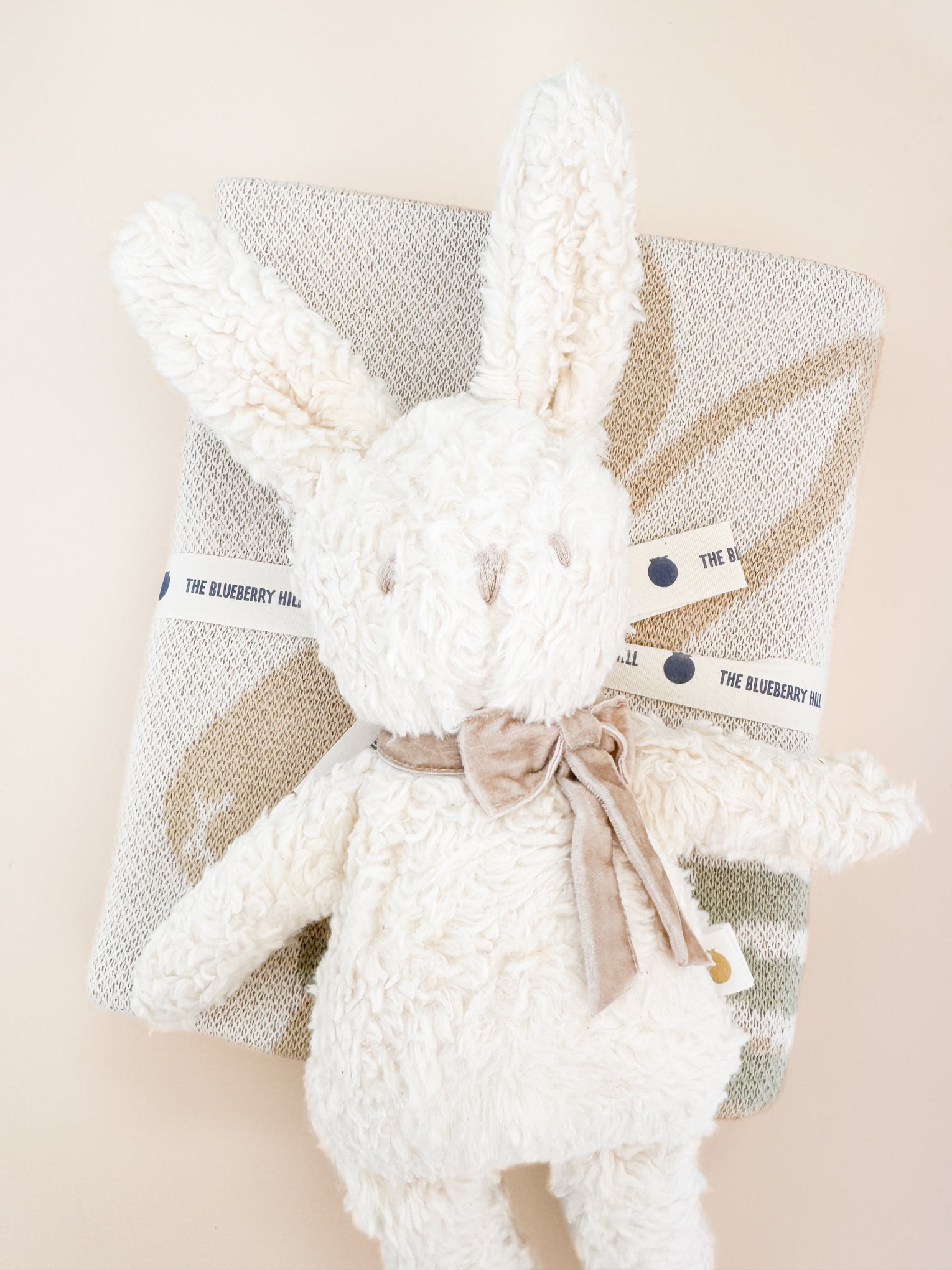 Charlie Bunny is always looking for chances to stop and smell the flowers. Greet your little bunny with this sweet spring set, featuring our Pastel Blanket and Bunny Plush Toy with a Taupe Velvet Bow, made of 100% Organic Cotton for sweet cozy comfort.