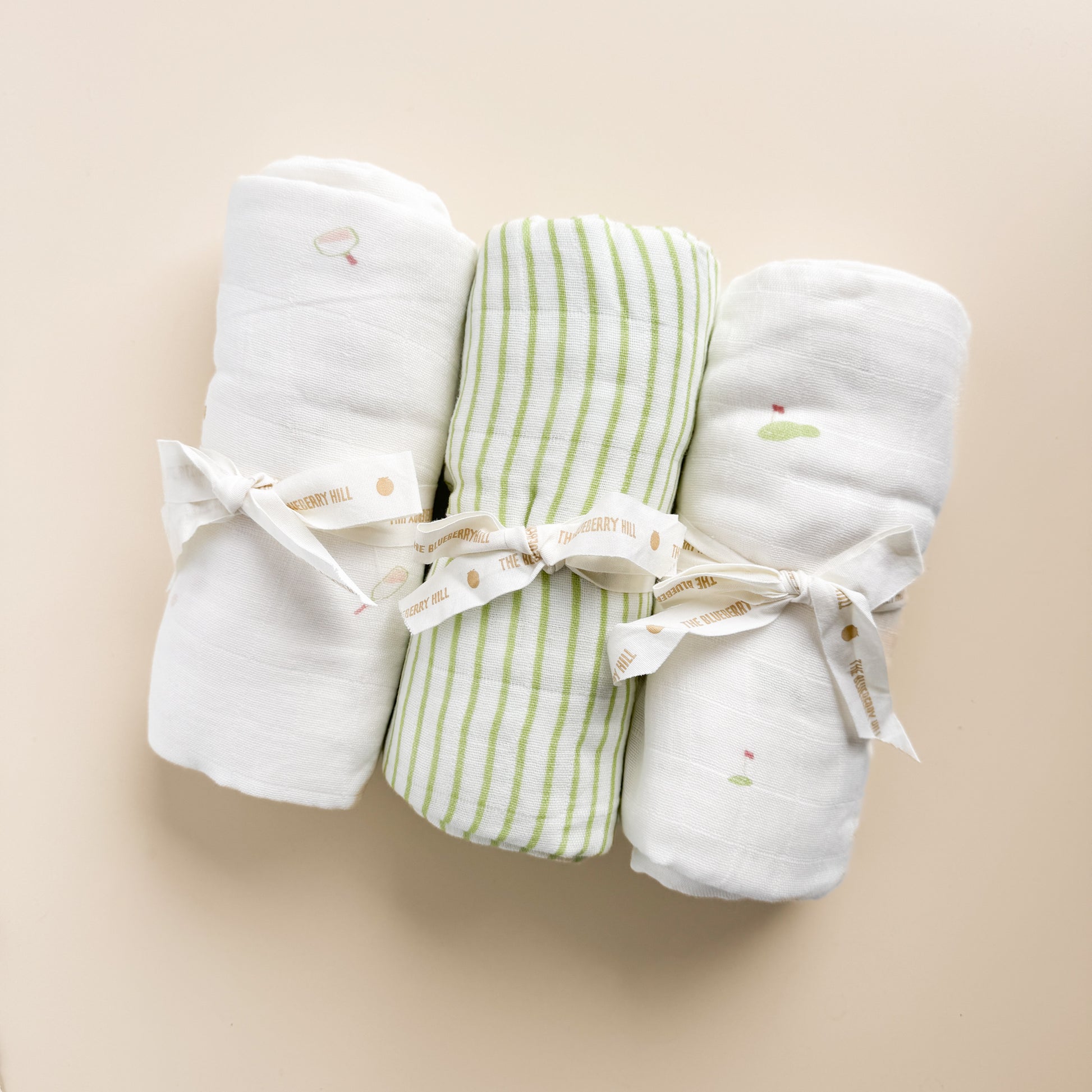 • Includes Pickleball Swaddle, Golf Swaddle, and Green Stripe Swaddle
